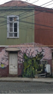 My favorite place of all – Cafe Mosqueto – more for its coffee than its design, outside along yet another alley-like passage – clearly they know how to use their alleys in Chile! The building was set back from the street, and the patio area in front was separated from the sidewalk by concrete planters; I don’t remember any covering in the front patio area, but I do remember enjoying the best cafe latte and good people watching. The street out front was “for residents only”, a quiet narrow alley that had a different surface than the main streets in the area. In fact, we snacked a few times on these narrow streets with different surfaces, and they were all quite lovely.